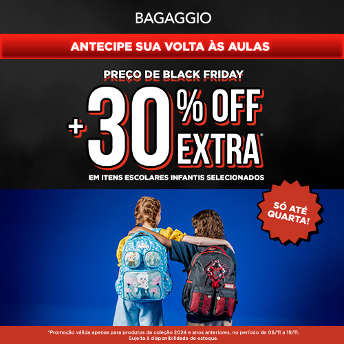 Aproveite o cupom exclusivo App AJ Fans e ganhe +30% de desconto EXTRA em itens escolares infantis selecionados, na loja Bagaggio do Nações Shopping!